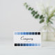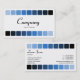 A stylish modern business/profile card template. Edged top and bottom with a row of nine round cornered squares going from a light blue to black. Company details on the front with name and contact details on the back.