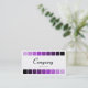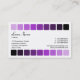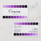 A stylish modern business/profile card template. Edged top and bottom with a row of nine round cornered squares going from a light purple to black. Company details on the front with name and contact details on the back.