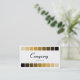 A stylish modern business/profile card template. Edged top and bottom with a row of nine round cornered squares going from a light yellow brown to black. Company details on the front with name and contact details on the back.