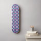 Violet and blue seamless pattern design with repeating stars and hexagonal shapes as well as white elements.