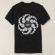 I give wanted to give this a 4 instead of a 5 because these Basic DARK T0shirts run unexpectedly SLIM or Narrow. Which is great if you do not have a potbelly, but I have a paunch. It isn't the shirt's fault that I've got a beer belly. The design and shirt itself is a quality cotton shirt. The color is more of a deep purple, but still a very pretty color. The Basic DARK T-shirts run a bit SLIMMER than the Basic Ts. The neck is a fraction narrower (or seems to be narrower) also. I'm a paunchy middle-aged woman and my neck is 12 inches (31cm) thick and the neckline fell about the same as in the photo of the man, and I had the desire to tug it a bit. So if you're a thick necked man or like loose shirts, be aware these are slimmer shirts. Once I get rid of my lockdown paunch it'll look great. The shirt washed well in cold water with no apparent bleeding. We don't have a dryer, so it hung dry. Did not shrink. Love the colors and the design. The design looks smaller on my shirt than it does on the model on-line. But still, it looks good on the shirt. The printing looks as it does on the model, just the size seems fractionally smaller. Washed garment in cold water, hung dry and design appeared unaffected.