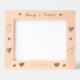 A personalised frame for a happy couple. Add your names and wedding or anniversary date. Pretty etched wood frame with whimsical hearts.