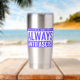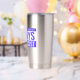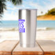 This thermal tumbler keeps your drink at the perfect temp while making a clear statement in striking blue: