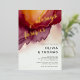 A fall wedding invitation template that features a painted, abstract watercolor scene of a beach and waves with a gold ink pour effect (the gold is a digital effect, not real foil!), modern script calligraphy and the headline "always and forever" in real gold foil. Classy and elegant, simple and modern, it is a lovely choice for a fall beach wedding - or simply an autumn wedding for a couple who loves burgundy, orange and fall colours and modern design.