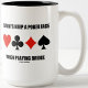 Bridge players will enjoy this mug featuring the sound bridge advice along with the four card suits: "Always Keep A Poker Face When Playing Bridge". No need to be an avid bridge player or bridge teacher to find this advice to be true at the bridge table!