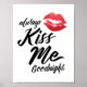 Modern brush script design with black letters and words, "Always Kiss Me Goodnight." Bold, red lips illustration frames the design on top right. Great gift reminder for your spouse!
