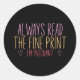 Always Read the Fine Print I'm Pregnant Classic Round Sticker