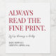 Always Read the Fine Print Pregnancy Announcement Wine Label