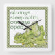 Pen and ink and watercolor illustration of a dozing dragon. Never be caught off guard, always sleep with one eye open. Here's one for the "Dragon's Lair", the man cave or kids room, D&D fan, oh... anywhere and for anyone.