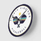 The pickleball player or fan in your life will love this clock featuring striped blue, teal, rust and yellow pickleball paddles and the phrase "Always Time For Pickleball." Part of a collection from Parcel Studios.
