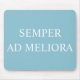 A motivational mouse mat featuring the Latin phrase ‘semper ad meliora’. A popular phrase in Ancient Rome, the translation is ‘always towards better things’. It reminds us to focus on moving forward towards greater things without looking back. The lettering of the mouse pad has a classical feel evoking Roman public inscriptions. The typographic design features crisp white text on a turquoise blue background. Being both inspirational and stylish, it will make a fine addition to your desk.