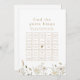This boho flower find the guest bingo game card from the Alyssa Collection is perfect for a spring or summer baby shower or baby sprinkle. The botanical design features white wildflowers and gold text with an elegant modern feel.