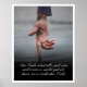 Mit der Hand eines Mannes, welche auf eine Wasseroberfläche tippt.