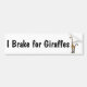 Hilarious cartoon giraffe bumper sticker says I brake for giraffes. Cute and fun. Great for giraffe lovers.