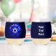 A light-coloured Star of David on a dark blue background. Hebrew text reads, "Am Yisrael Chai" (The people of Israel live!). Customise by adding your own text on the reverse side.