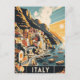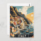• Capture the timeless beauty of Italy’s Amalfi Coast with this vintage-style travel postcard. Featuring vibrant, sunlit houses stacked along the rugged cliffs and the sparkling Mediterranean Sea, this artwork evokes the charm and allure of Italy’s iconic coastline.