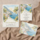 This design features a romantic watercolor illustration of a seaside village framed by vibrant lemon trees overlooking the sparkling blue sea. The soft pastel palette and refined typography create a timeless and luxurious look perfect for destination weddings.