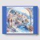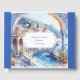 Amalfi Coast Italy Mediterranean blue tiles, with the beautiful town, roses and flowers in watercolor,and blue frame, perfect for your Guest Book, for wedding, birthday, anniversary...