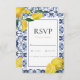 Personalise this Amalfi Coast mediterranean lemon tiles wedding rsvp card with your own wordings easily and quickly, simply press the customise it button to further re-arrange and format the style and placement of the text.