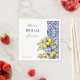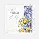 Amalfi Positano Vietri blue Majolica tiles lemons bridal shower template napkins, Mediterranean themed blue white and yellow tiles with bunch of citrus with lemons and blooms in blue ceramics vase bridal shower napkins personalised tableware decor