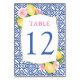 Amalfi Lemons Pink Flowers Blue Tiles Wedding Table Number