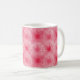 This mug has a mid-century modern design of starbursts in shades of amaranth.