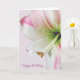 extreme closeup of amaryllis flower on pastel pink background for birthday