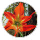 This Ceramic Pull showcases the intense beauty of a flower, an Amaryllis blooming in the garden. The original photograph by ZoeSPEAK is a closeup, and the details of the flower, the shapes and color changes from the center outward are amazing. From soft shades of green blending into yellow, the bloom finishes with five outstretched petals in deep, rich oranges against a background of green leaves and muted brown wood.