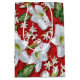 Exquisite original floral pattern of red and white amaryllis blossoms, holly and dove on a red faux-textured background for your holiday gift giving. By Surface Pattern Designer L. Diane Johnson.