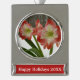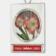 Amaryllis in Snow Red Holiday Winter Floral Silver Plated Banner Ornament