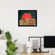 Elegant ,colourful seascape with red sun, sea waves in vibrant black,brown,white colours re-elaborated from an antique japanese miniature. Amaterasu is a part of the Japanese myth cycle and also a major deity of the Shinto religion. She is the goddess of the sun, but also of the universe. The name Amaterasu derived from Amateru meaning "shining in heaven." The meaning of her whole name, Amaterasu-ōmikami, is "the great August kami (god) who shines in the heaven".For Amaterasu is also credited with inventing the cultivation of rice and wheat, the use of silkworms and weaving with the loom.