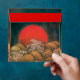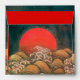 Elegant ,colourful seascape with red sun, sea waves in vibrant black,brown,white colours re-elaborated from an antique japanese miniature. Amaterasu is a part of the Japanese myth cycle and also a major deity of the Shinto religion. She is the goddess of the sun, but also of the universe. The name Amaterasu derived from Amateru meaning "shining in heaven." The meaning of her whole name, Amaterasu-ōmikami, is "the great August kami (god) who shines in the heaven".For Amaterasu is also credited with inventing the cultivation of rice and wheat, the use of silkworms and weaving with the loom.