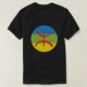I give wanted to give this a 4 instead of a 5 because these Basic DARK T0shirts run unexpectedly SLIM or Narrow. Which is great if you do not have a potbelly, but I have a paunch. It isn't the shirt's fault that I've got a beer belly. The design and shirt itself is a quality cotton shirt. The color is more of a deep purple, but still a very pretty color. The Basic DARK T-shirts run a bit SLIMMER than the Basic Ts. The neck is a fraction narrower (or seems to be narrower) also. I'm a paunchy middle-aged woman and my neck is 12 inches (31cm) thick and the neckline fell about the same as in the photo of the man, and I had the desire to tug it a bit. So if you're a thick necked man or like loose shirts, be aware these are slimmer shirts. Once I get rid of my lockdown paunch it'll look great. The shirt washed well in cold water with no apparent bleeding. We don't have a dryer, so it hung dry. Did not shrink. Love the colors and the design. The design looks smaller on my shirt than it does on the model on-line. But still, it looks good on the shirt. The printing looks as it does on the model, just the size seems fractionally smaller. Washed garment in cold water, hung dry and design appeared unaffected.