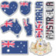 Amazing Australia Shapes National Symbols Sticker. Two country name stickers, one in the colours of the national flag and the other one covered in the Word Cloud with the words "Australia" written in the different alphabet forms and/or languages and fonts. All words are coloured with the national colours used on the flag of Australia, Beautiful heart, shield (escutcheon) and map filled with the representation of the Australia national flag. Hand sticker with the two fingers up, representing victory filled with the colours of the Australia national flag. The last two stickers are national flag of the Australia and the national Coat of Arms. This is the great set of superb stickers with most of them unique and hand drawn. All stickers are fully customisable using "Customise it!" feature. You can mix and match them as you wish. If you want multiple hearts but no shield fire away. Maybe you want only hand with the victory sign? Easy, remove everything else and make multiple copies of the hand. These grand stickers are the perfect sticky gift for any occasion. Fire away and stick them where your heart desire! © 2022 CountriesOfTheWorld