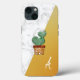 Sweet, elegant, white marble, gold monogram whit cactus iphone 13 case