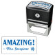 This fun rubber stamp design features the encouraging message "AMAZING!" and a personalised educator's name. It also features a decorative star shape. It could be used by a teacher or educator when marking assignments, to acknowledge that the student has done well.