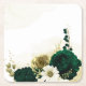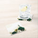 Beautiful emerald green ivory white and gold flowers with gold leaves botanical wedding paper coaster.