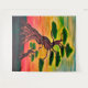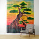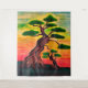 The turquoise of the evening sky highlights the silhouettes of two baobab trees. They grow here for ever and ever, old and young generations. The graphic looks beautiful on the tapestry.