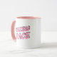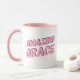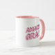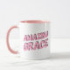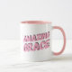 This coffee mug says "Amazing Grace" on both sides in a pink font.