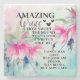 Christian stone coaster depicts a beautiful floral watercolor with pink flowers on a blue background. It features the beloved Christian Hymn, "Amazing Grace, how sweet the sound that saved a wretch like me! I once was lost, but now am found, was blind, but now I see."