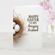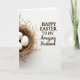 Designed with a calm, intimate Easter mood, the image features a carefully woven bird’s nest tucked into the upper left area, made from thin twigs and straw-like strands. Inside sit three smooth eggs with light brown speckles, close together as if sharing a quiet, affectionate moment. Soft, diffused lighting warms the eggs and nest, creating gentle shadows that add depth without crowding the scene. The background is a wide, plain white space that keeps the focus on the natural textures and the closeness of the objects. To the right, dark brown text reads “HAPPY EASTER TO MY Amazing Husband,” with “HAPPY EASTER TO MY” set in a sturdy serif style and “Amazing Husband” in a flowing cursive look. The lettering sits in the open space beside the nest, balanced so the message feels like it’s leaning toward the eggs in a tender, companionable way 🌷. The nest’s twig edges curl outward slightly, and the three speckled eggs rest snugly at the center 🐰.