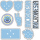 Amazing Micronesia Shapes National Symbols Sticker. Two country name stickers, one in the colours of the national flag and the other one covered in the Word Cloud with the words "Micronesia" written in the different alphabet forms and/or languages and fonts. All words are coloured with the national colours used on the flag of Micronesia, Beautiful heart, shield (escutcheon) and map filled with the representation of the Micronesia national flag. Hand sticker with the two fingers up, representing victory filled with the colours of the Micronesia national flag. The last two stickers are national flag of the Micronesia and the national Coat of Arms. This is the great set of superb stickers with most of them unique and hand drawn. All stickers are fully customisable using "Customise it!" feature. You can mix and match them as you wish. If you want multiple hearts but no shield fire away. Maybe you want only hand with the victory sign? Easy, remove everything else and make multiple copies of the hand. These grand stickers are the perfect sticky gift for any occasion. Fire away and stick them where your heart desire! © CountriesOfTheWorld