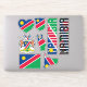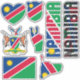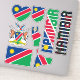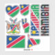 Amazing Namibia Shapes National Symbols Sticker. Two country name stickers, one in the colours of the national flag and the other one covered in the Word Cloud with the words "Namibia" written in the different alphabet forms and/or languages and fonts. All words are coloured with the national colours used on the flag of Namibia, Beautiful heart, shield (escutcheon) and map filled with the representation of the Namibia national flag. Hand sticker with the two fingers up, representing victory filled with the colours of the Namibia national flag. The last two stickers are national flag of the Namibia and the national Coat of Arms. This is the great set of superb stickers with most of them unique and hand drawn. All stickers are fully customisable using "Customise it!" feature. You can mix and match them as you wish. If you want multiple hearts but no shield fire away. Maybe you want only hand with the victory sign? Easy, remove everything else and make multiple copies of the hand. These grand stickers are the perfect sticky gift for any occasion. Fire away and stick them where your heart desire! © 2022 CountriesOfTheWorld