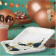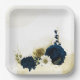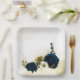Beautiful navy blue ivory white and gold flowers with gold leaves botanical wedding paper paper plates.