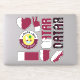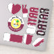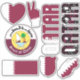 Amazing Qatar Shapes National Symbols Sticker. Two country name stickers, one in the colours of the national flag and the other one covered in the Word Cloud with the words "Qatar" written in the different alphabet forms and/or languages and fonts. All words are coloured with the national colours used on the flag of Qatar, Beautiful heart, shield (escutcheon) and map filled with the representation of the Qatar national flag. Hand sticker with the two fingers up, representing victory filled with the colours of the Qatar national flag. The last two stickers are national flag of the Qatar and the national Coat of Arms. This is the great set of superb stickers with most of them unique and hand drawn. All stickers are fully customisable using "Customise it!" feature. You can mix and match them as you wish. If you want multiple hearts but no shield fire away. Maybe you want only hand with the victory sign? Easy, remove everything else and make multiple copies of the hand. These grand stickers are the perfect sticky gift for any occasion. Fire away and stick them where your heart desire! © 2022 CountriesOfTheWorld