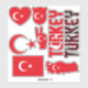 Amazing Turkey Shapes National Symbols Sticker. Two country name stickers, one in the colours of the national flag and the other one covered in the Word Cloud with the words "Turkey" written in the different alphabet forms and/or languages and fonts. All words are coloured with the national colours used on the flag of Turkey, Beautiful heart, shield (escutcheon) and map filled with the representation of the Turkey national flag. Hand sticker with the two fingers up, representing victory filled with the colours of the Turkey national flag. The last two stickers are national flag of the Turkey and the national Coat of Arms. This is the great set of superb stickers with most of them unique and hand drawn. All stickers are fully customisable using "Customise it!" feature. You can mix and match them as you wish. If you want multiple hearts but no shield fire away. Maybe you want only hand with the victory sign? Easy, remove everything else and make multiple copies of the hand. These grand stickers are the perfect sticky gift for any occasion. Fire away and stick them where your heart desire! © 2023 CountriesOfTheWorld