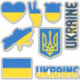 Amazing Ukraine Shapes National Symbols Sticker. Two country name stickers, one in the colours of the national flag and the other one covered in the Word Cloud with the words "Ukraine" written in the different alphabet forms and/or languages and fonts. All words are coloured with the national colours used on the flag of Ukraine, Beautiful heart, shield (escutcheon) and map filled with the representation of the Ukraine national flag. Hand sticker with the two fingers up, representing victory filled with the colours of the Ukraine national flag. The last two stickers are national flag of the Ukraine and the national Coat of Arms. This is the great set of superb stickers with most of them unique and hand drawn. All stickers are fully customisable using "Customise it!" feature. You can mix and match them as you wish. If you want multiple hearts but no shield fire away. Maybe you want only hand with the victory sign? Easy, remove everything else and make multiple copies of the hand. These grand stickers are the perfect sticky gift for any occasion. Fire away and stick them where your heart desire! © 2022 CountriesOfTheWorld