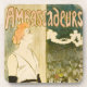 Vintage illustration French Art Nouveau advertising poster design for Ambassadeurs featuring Yvette Guilbert by Theophile Alexandre Steinlen. Yvette Guilbert was a French cabaret singer and actress of the Belle Époque.