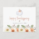 AMBER Fall White Pumpkin and Floral Thanksgiving Postcard