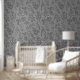 This floral botanical flower dark grey and black wallpaper is perfect for a modern bedroom, kitchen, bathroom or accent wall. The design features a tossed pattern of line art florals and is customisable in any colour in the design view.